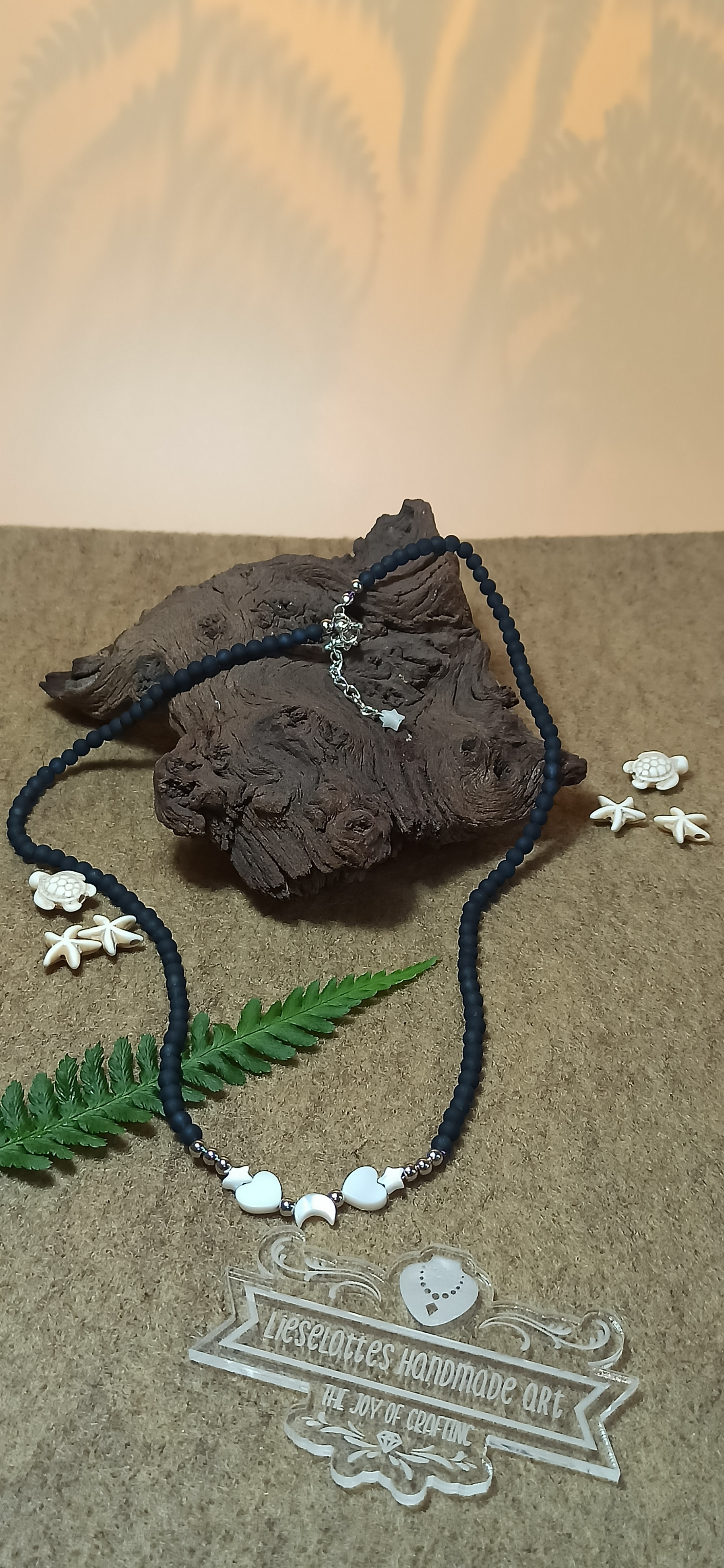 - nachtblaue Glasperlen verleihen der Halskette einen Hauch von Mystik und lassen dich strahlen