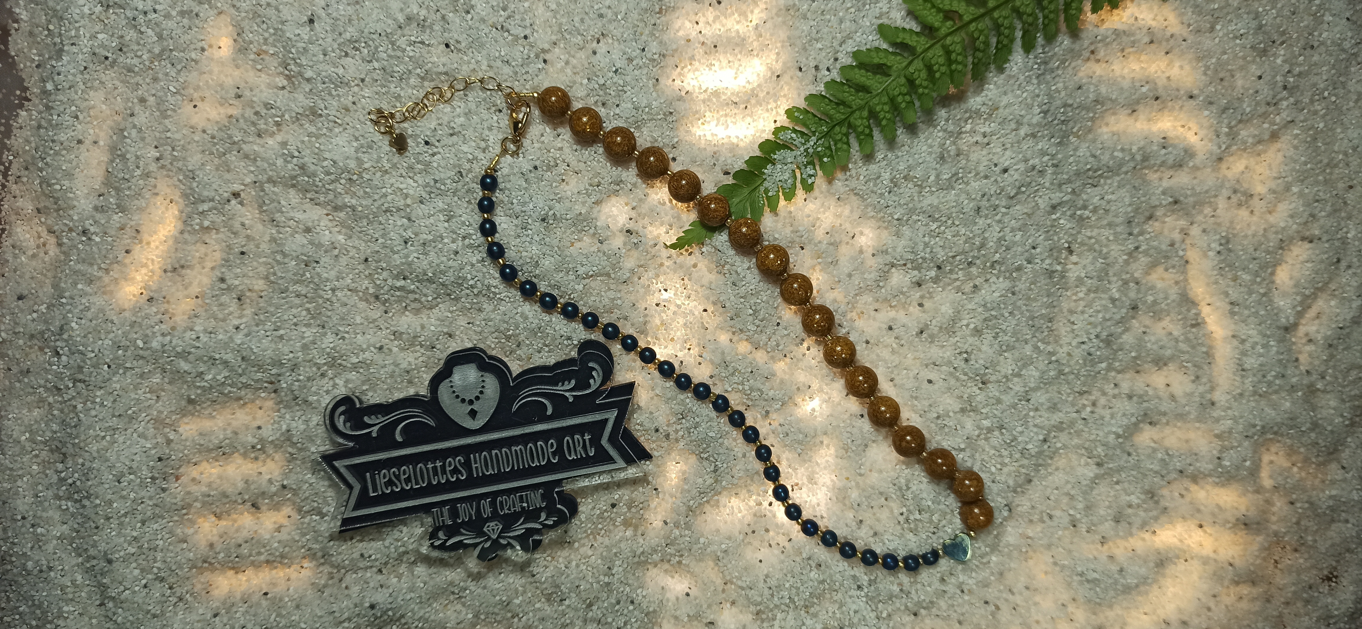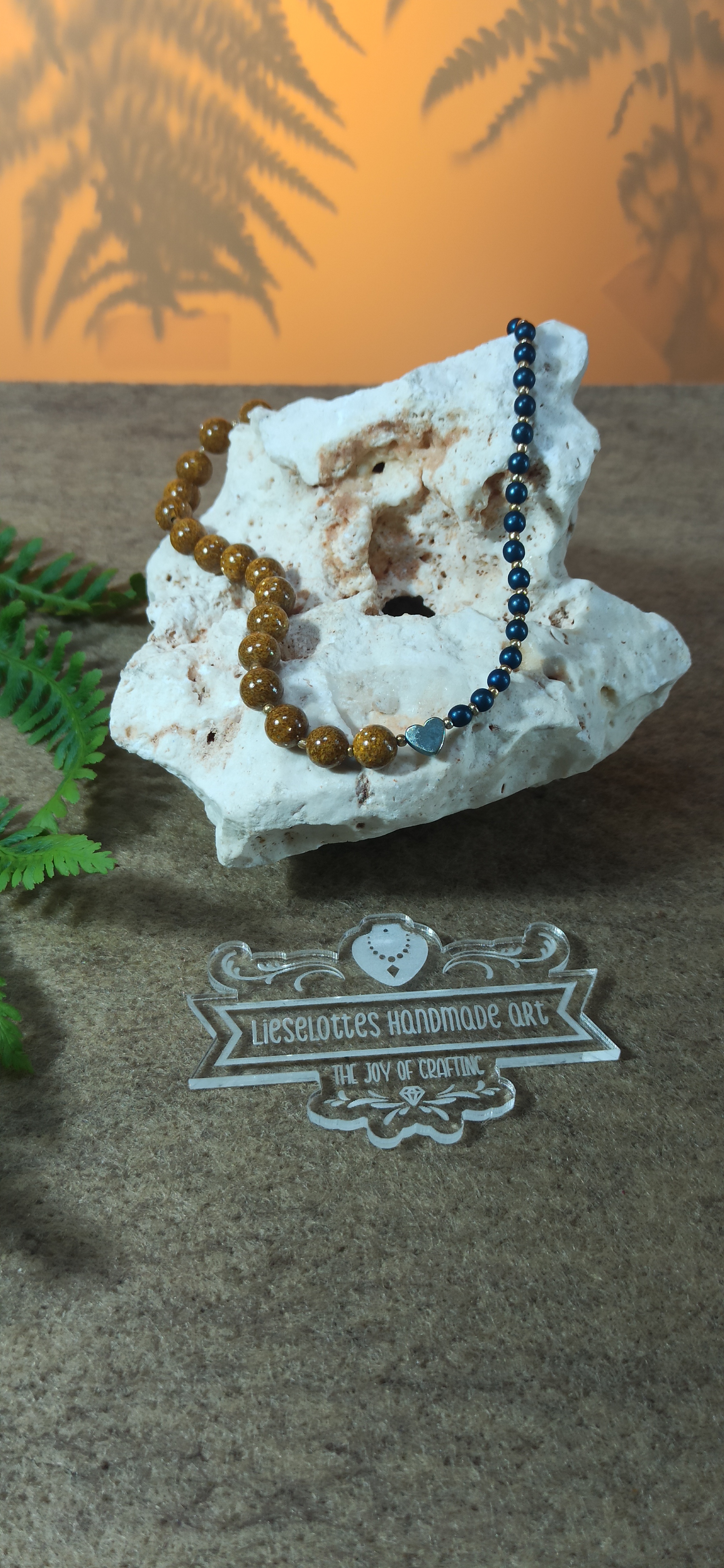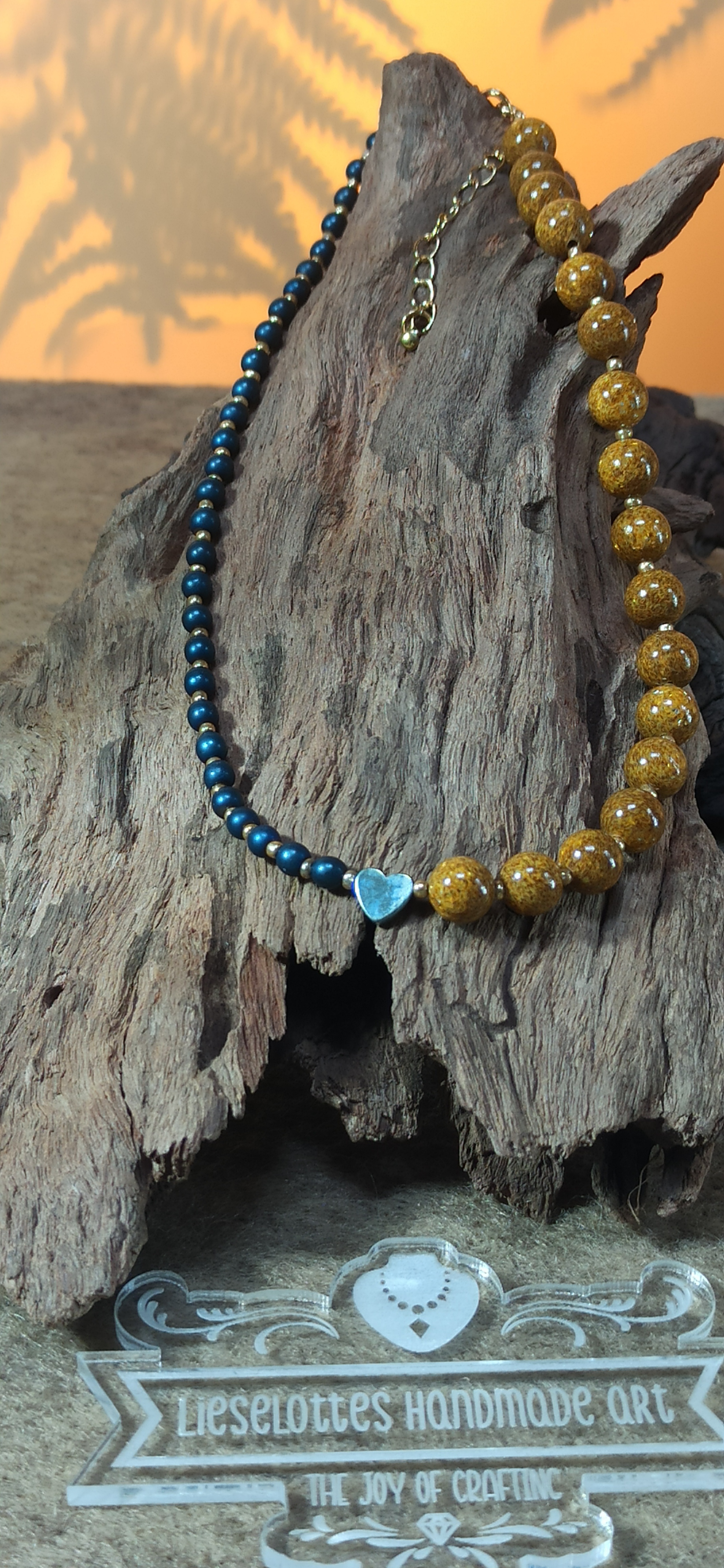 Startseite » Halsschmuck » Choker - Ketten » "Desert Night" - Glas-, echte Hämatit- und Jade-Perlen (Unikat)