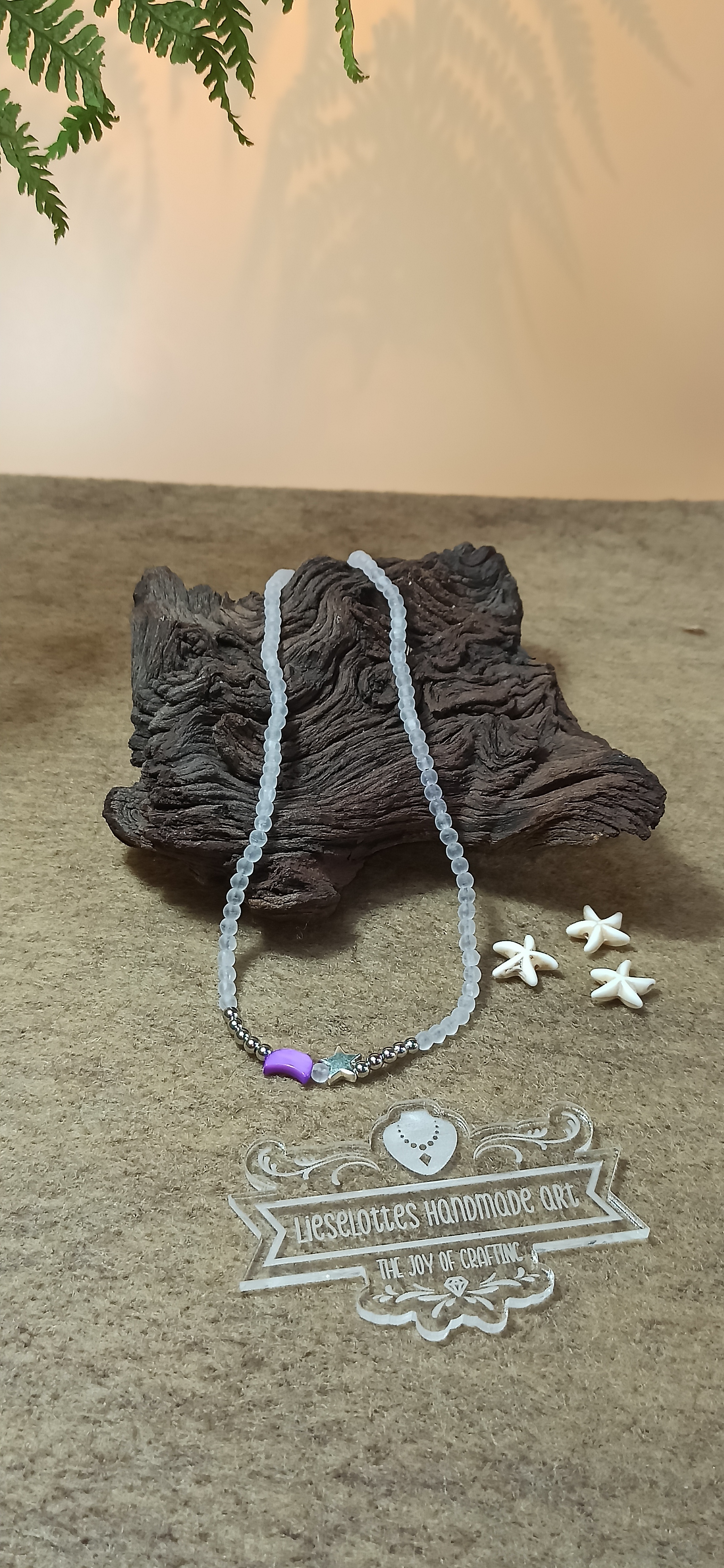 - halbdurchsichtige Glasperlen verleihen der Halskette das Aussehen einer Eisprinzessin
