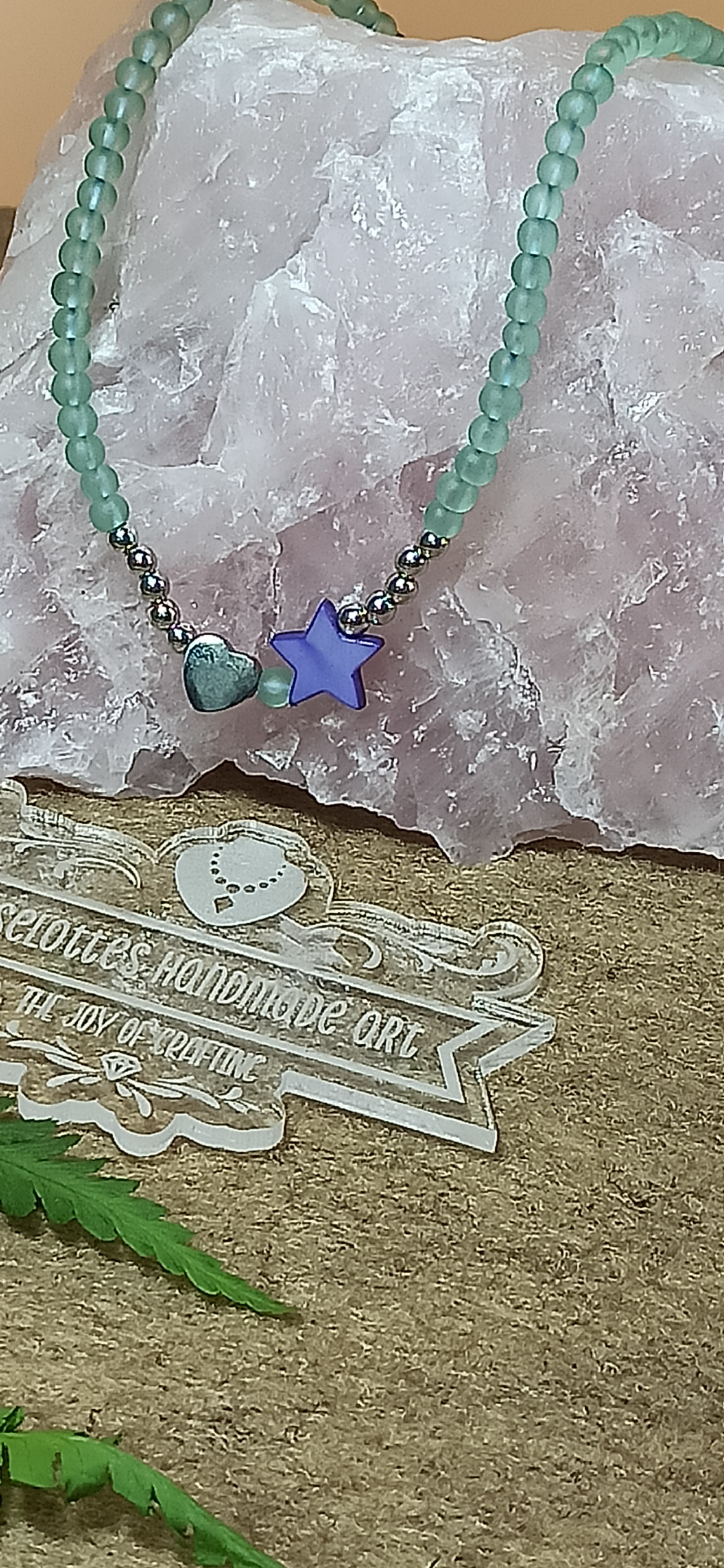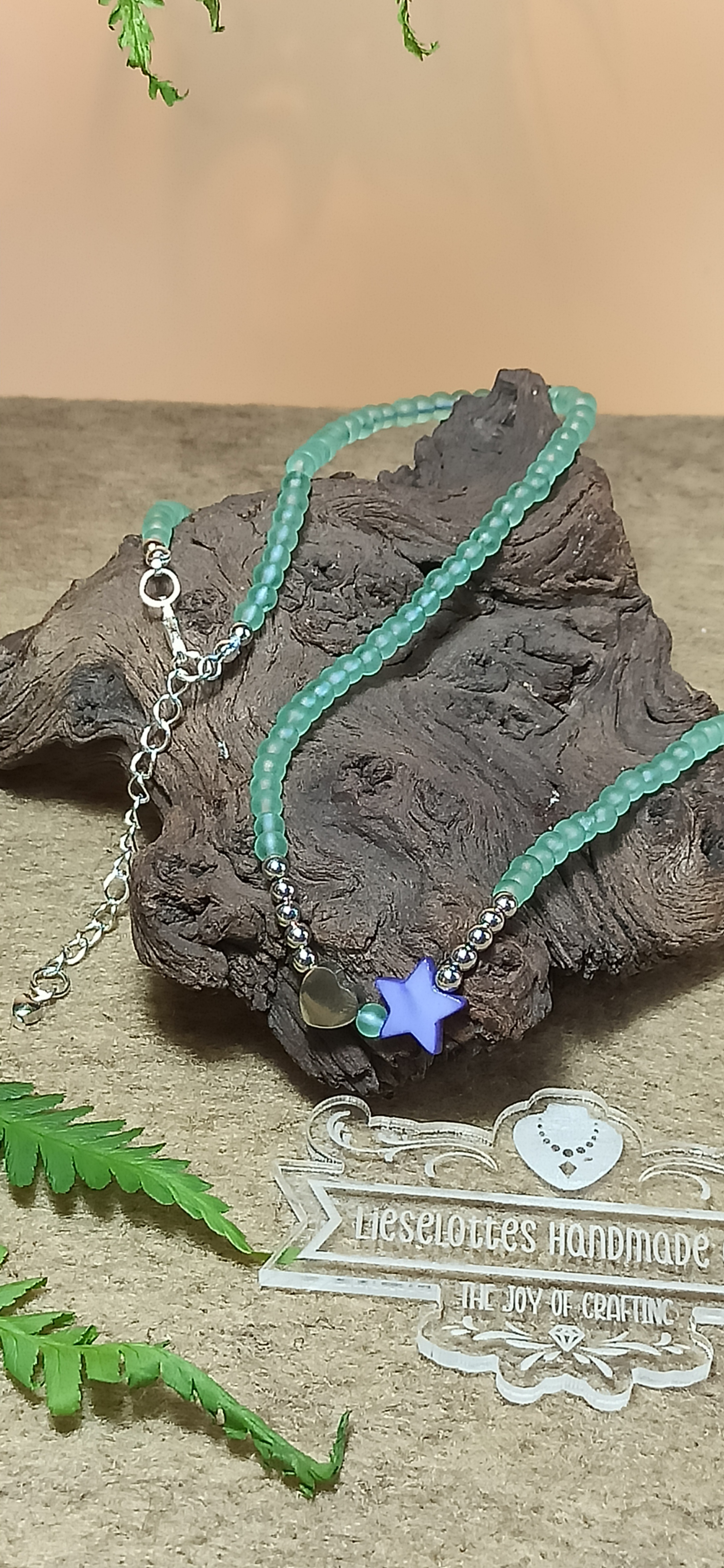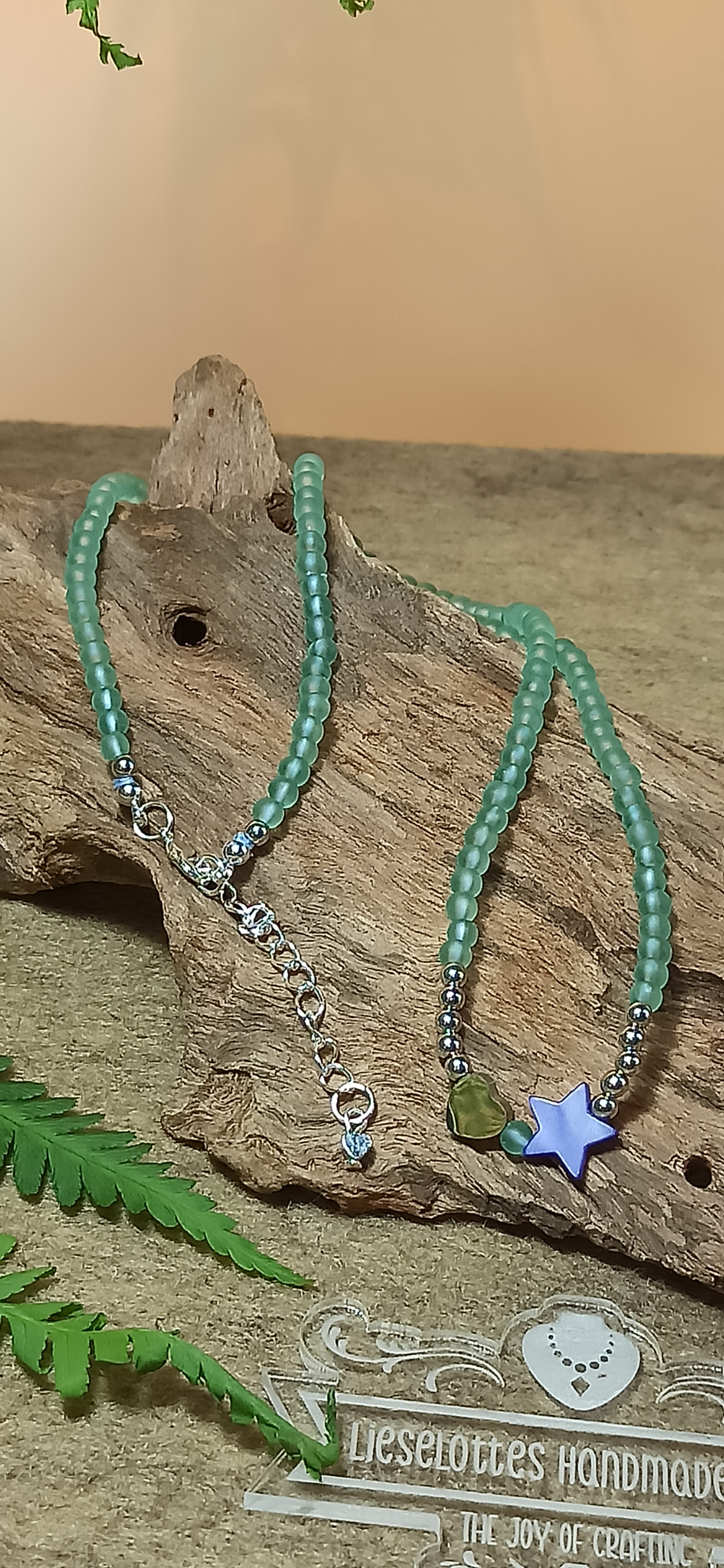 - mintfarbene Glasperlen verleihen der Halskette etwas Geheimnisvolles