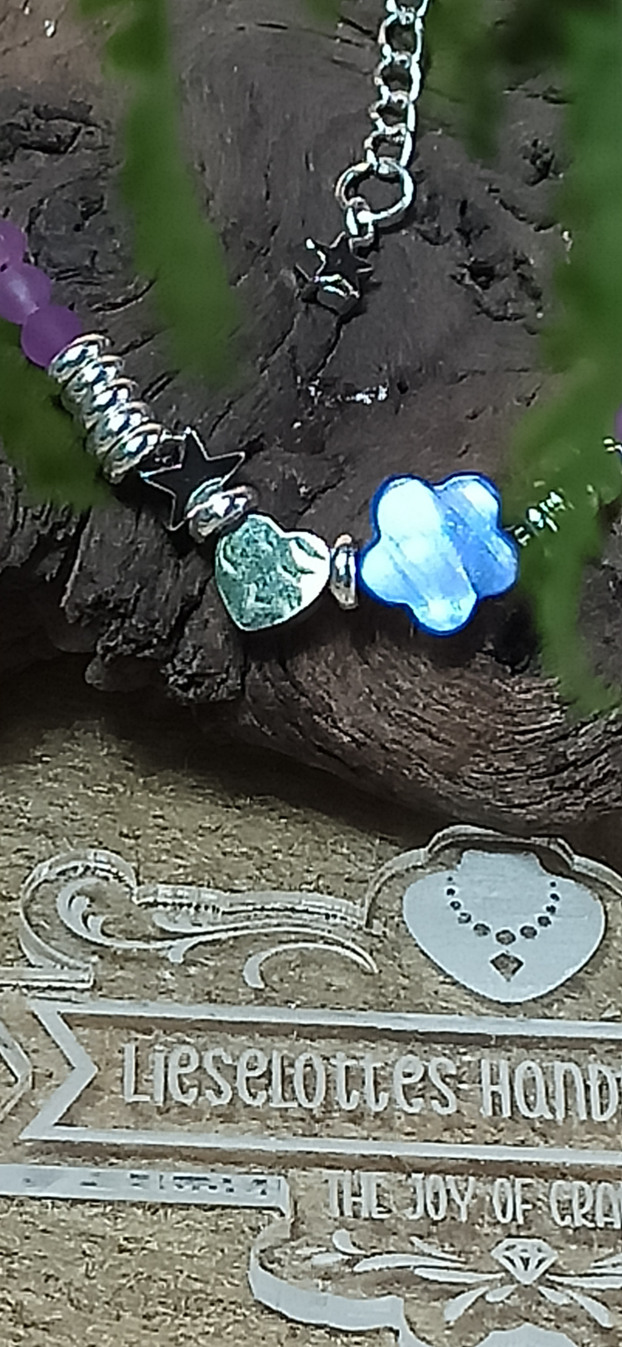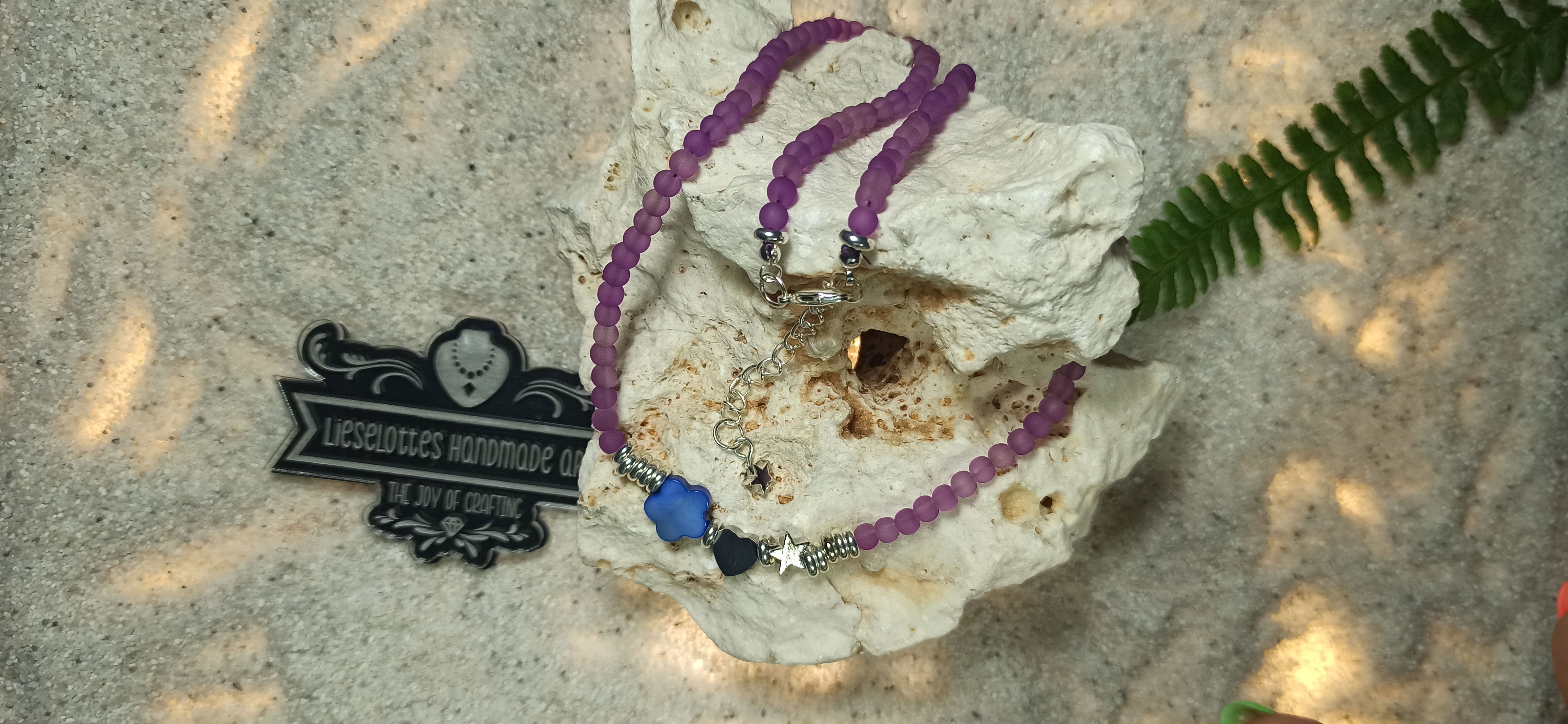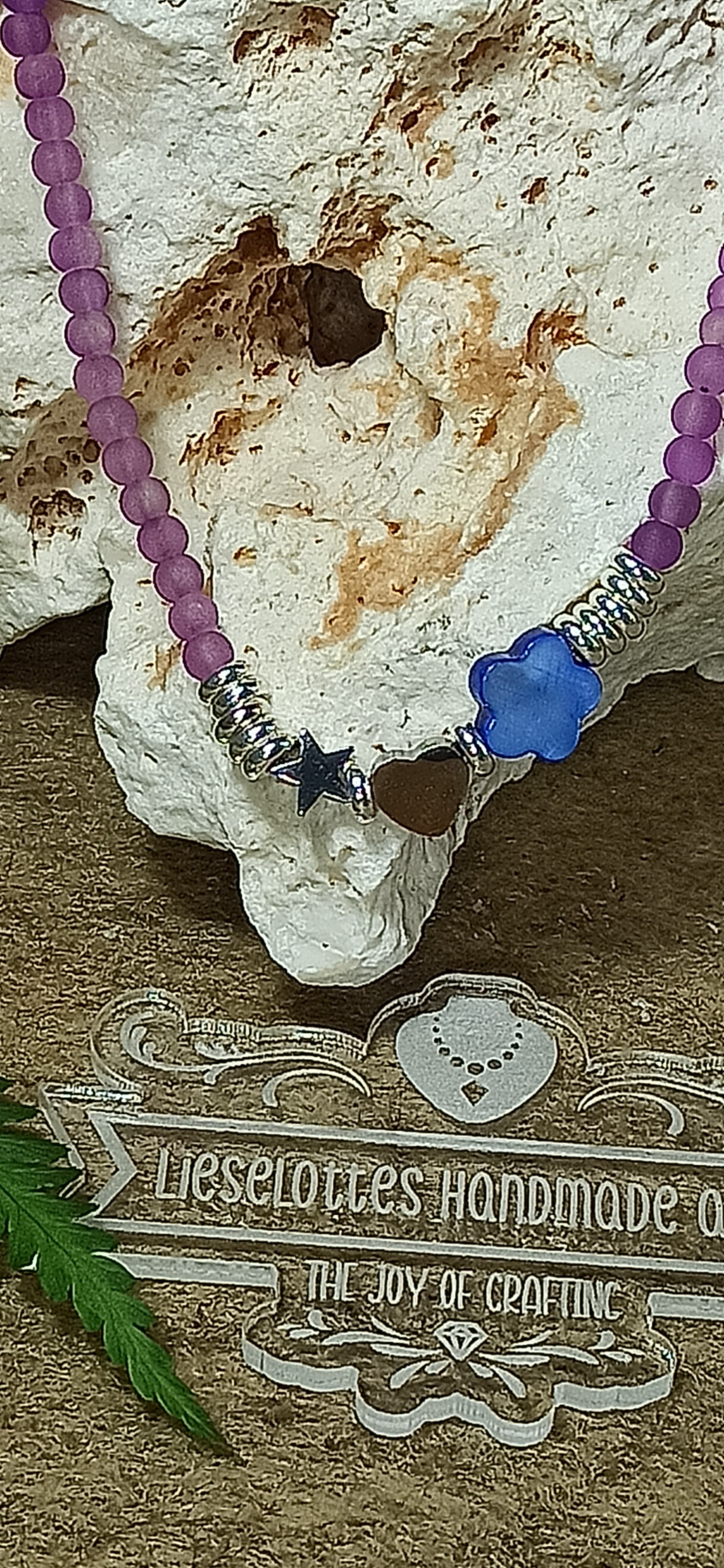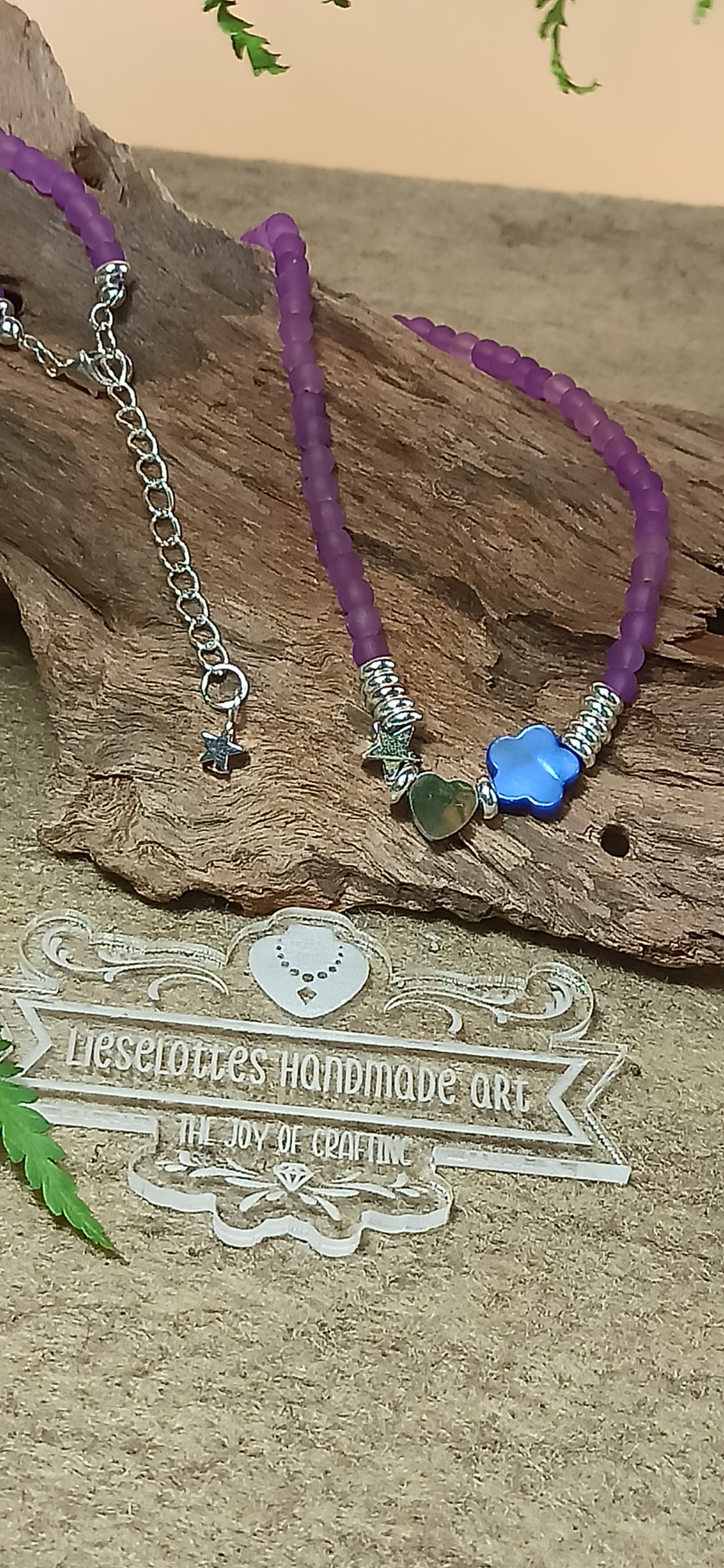 - lilafarbene Glasperlen verleihen der Halskette etwas Geheimnisvolles